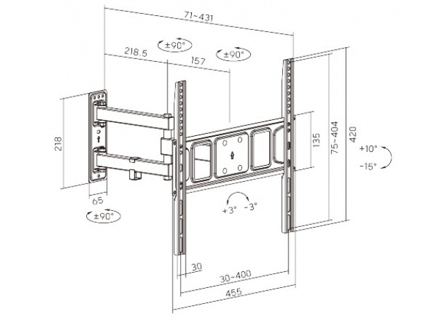Compatible con medidas de Vesa: 75x75, 100x100, 100x150, 150x100, 100x200, 200x100, 150x150, 200x200, 300x200, 400x200, 300x300, 400x300 y 400x400