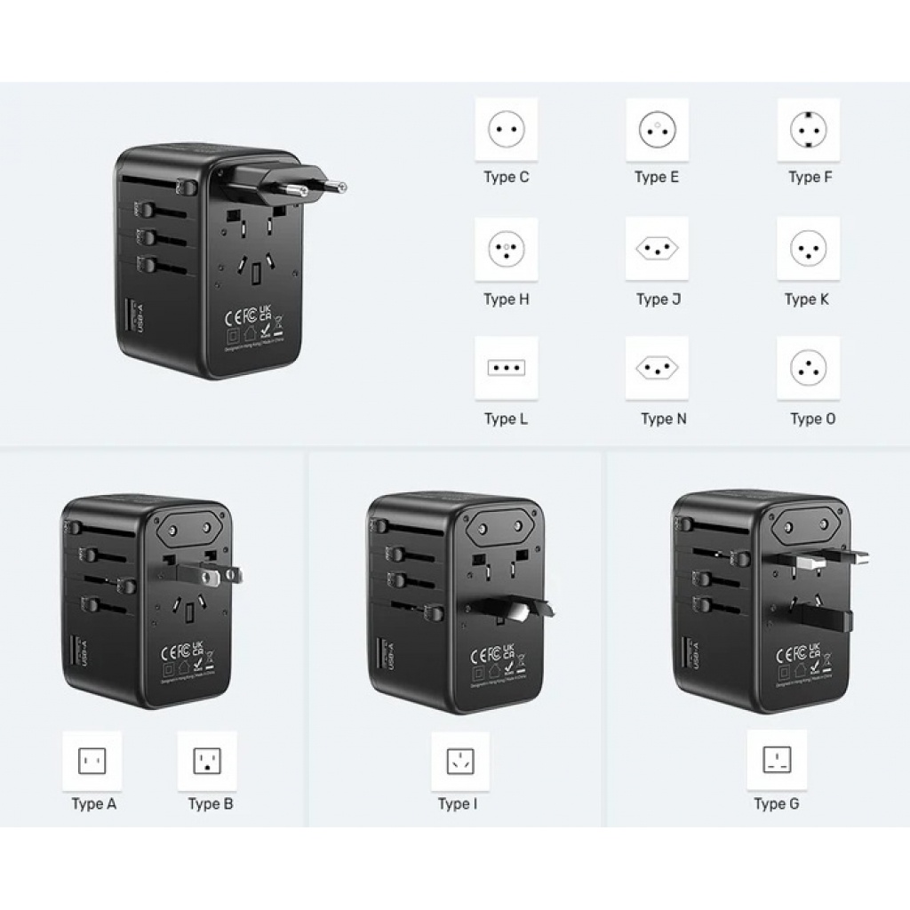 El adaptador de viaje universal de 100 W de UNITEK está equipado con 4 puertos de carga USB-C PD (máximo 100 W) y 1 puerto de carga USB-A (máximo 12 W) que pueden cargar hasta 5 dispositivos simultáneamente. Es ideal para viajes, viajes de negocios o estudios en el extranjero. Los enchufes de viaje integrados se pueden utilizar en más de 200 países de todo el mundo.