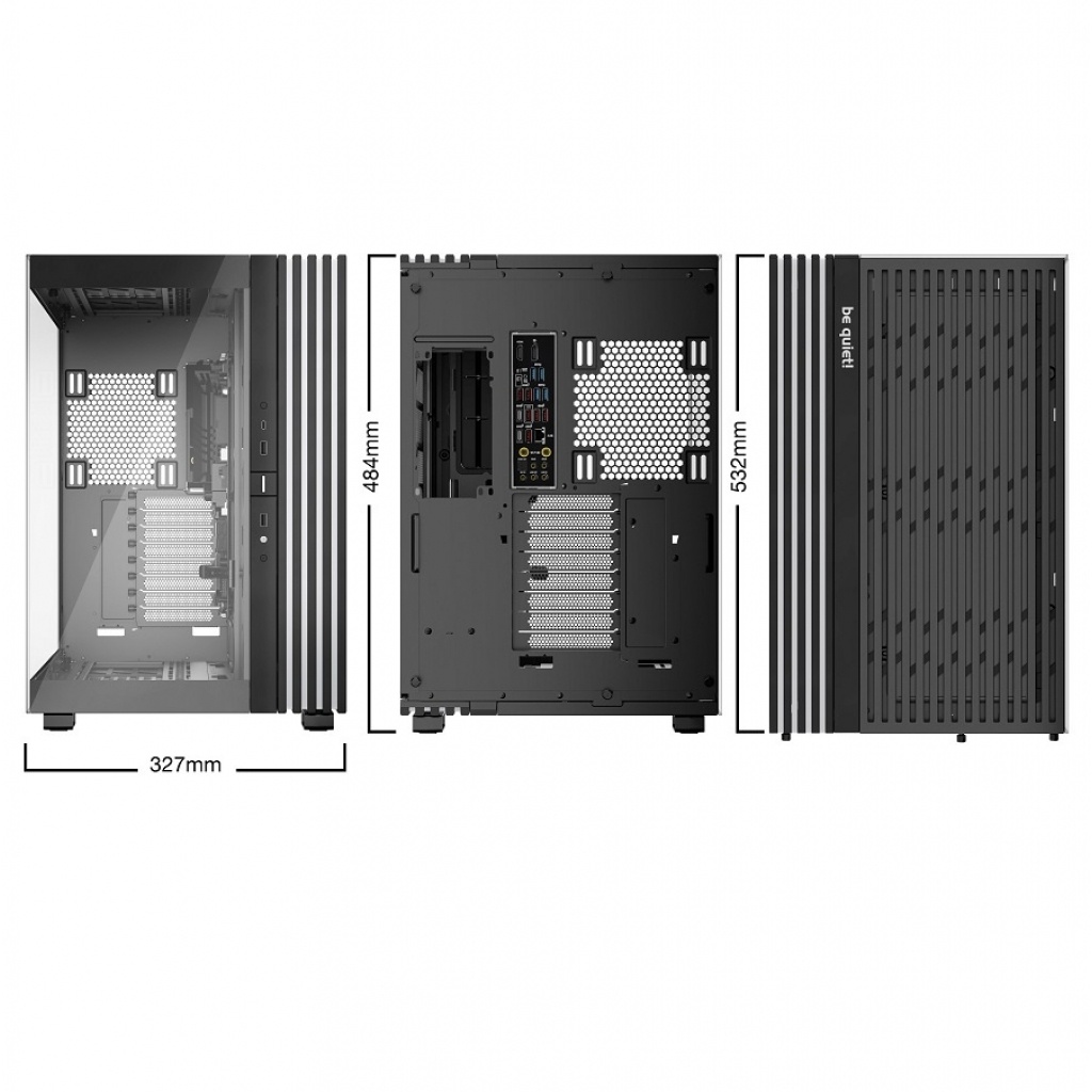 Diseño extra espacioso para hasta dos radiadores de 420mm al mismo tiempo y una placa base E-ATX.