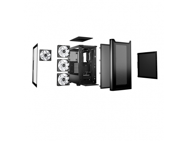 Panel frontal "mesh" y cubierta superior de flujo de aire. Panel lateral de cristal templado.