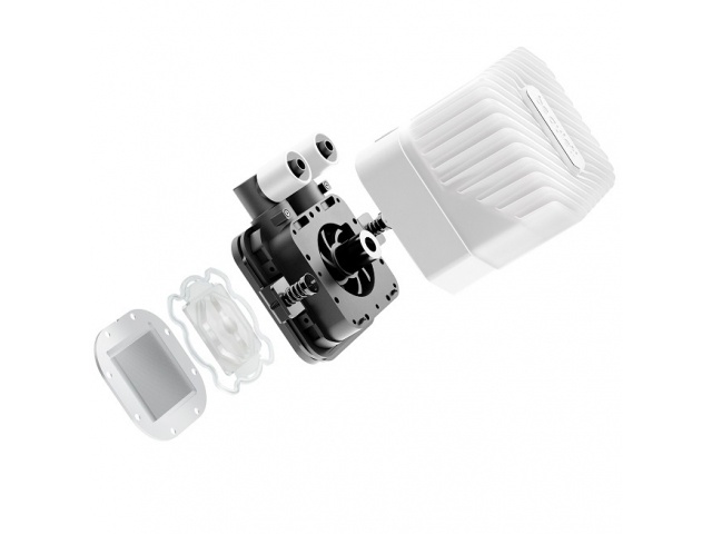 Puerto de recarga de fácil acceso y botella de refrigerante incluida para una larga vida útil.