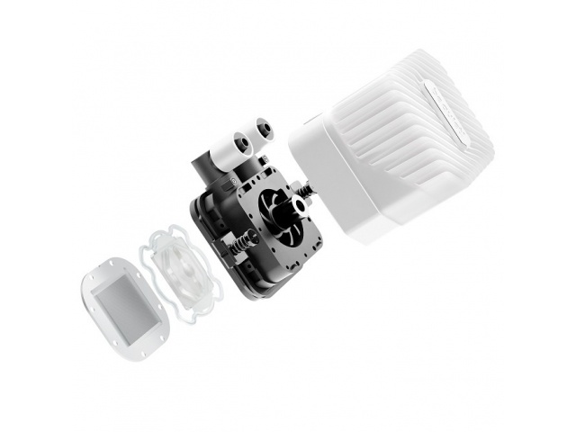 Puerto de recarga de fácil acceso y botella de refrigerante incluida para una larga vida útil.